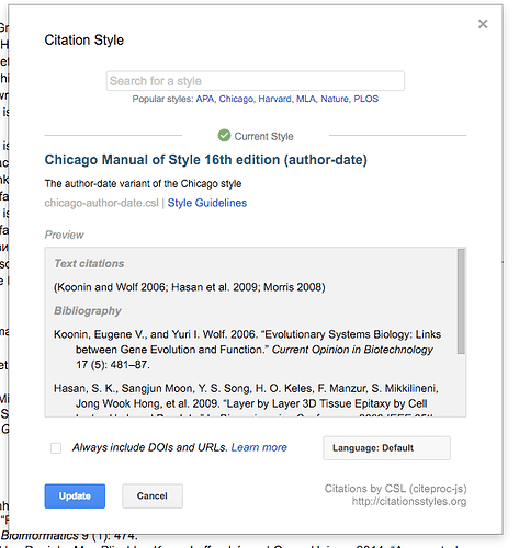 Default style - Used in new Google Documents and for copying citations to the clipboard