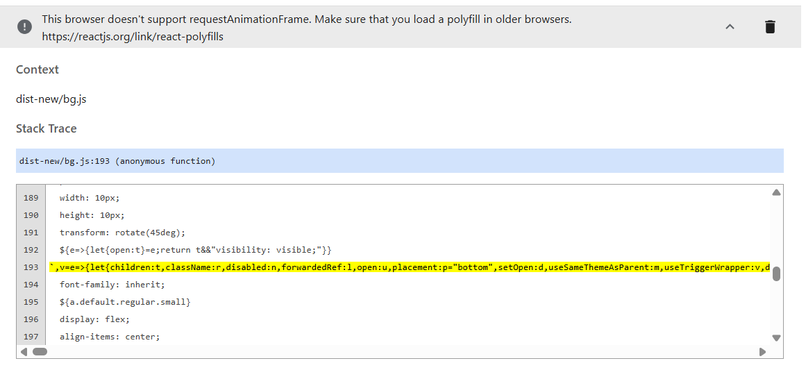 I enabled the error log in chrome, found following log: